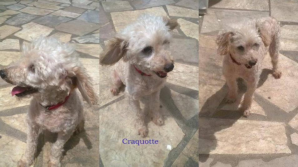 Craquotte est la doyenne de nos protégés. Elle est issue d’un sauvetage de caniches. Cette charmante petite caniche d’une dizaine d’années recherche un panier retraite dans un foyer aimant et prêt à l’accepter avec ses petits défauts. Elle est presque aveugle et a besoin d’aide pour la propreté. Elle adore la compagnie d’autres chiens qui sont nécessaires pour son bien-être. De plus, il lui faut un environnement avec un petit jardin clos pour se déplacer en sécurité