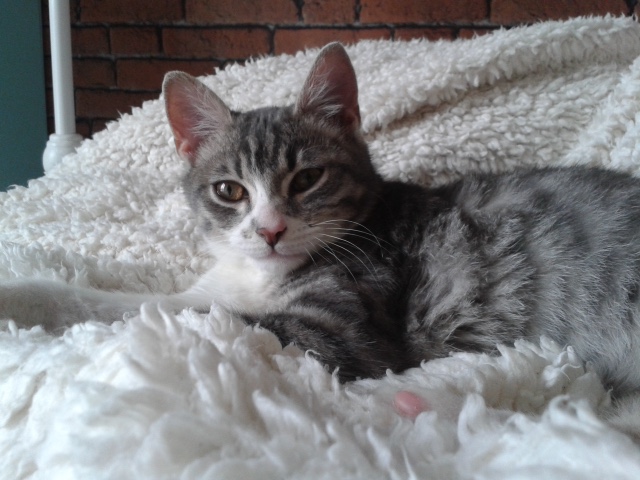 Tout se passe bien. La première semaine il se cachait dans tous les coins et petit à petit il a montré son museau. La journée il dort et le soir, il joue. Il est agréable, c’est que du bonheur, merci ! (ses adoptants, mai 2016)