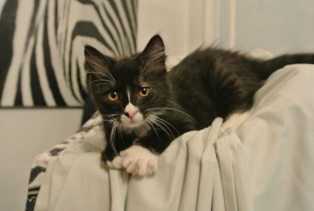 Minuit est une chatonne espiègle et très joueuse.