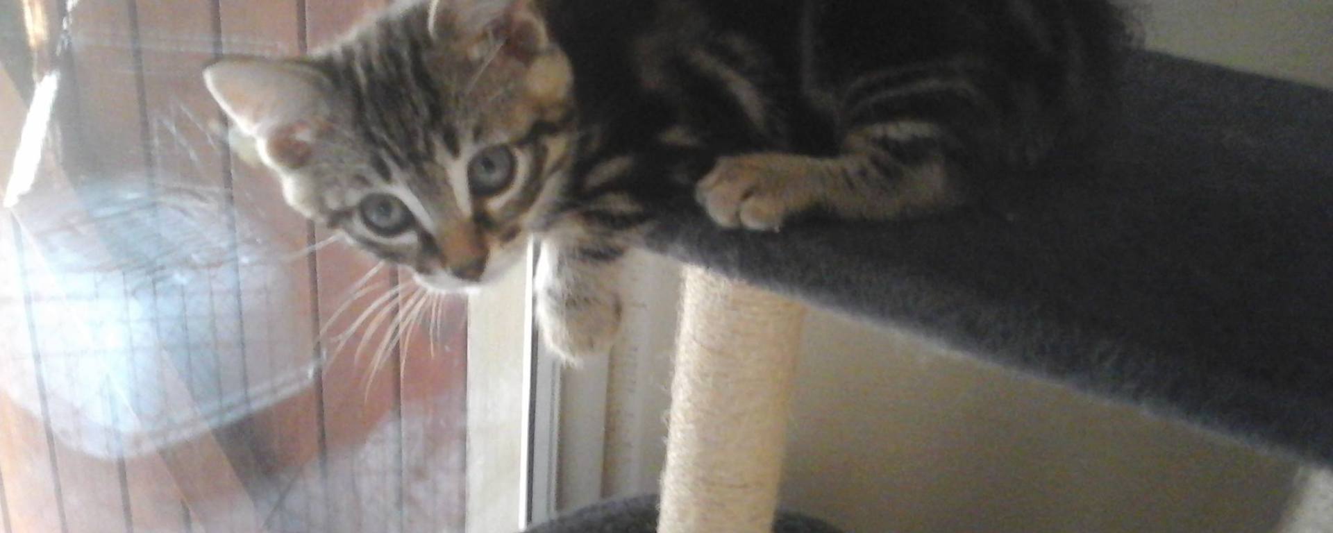 – Date de naissance : 27/04/2016 – Sexe : mâle – Couleur : tigré angora – Caractère : joueur, câlin