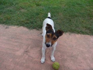 Comme tout Jack Russel Lyxie est infatigable quand il s’agit de jouer à la balle ; et si on s’assoie elle aime sauter sur les genoux pour faire des bisous et des câlins.
