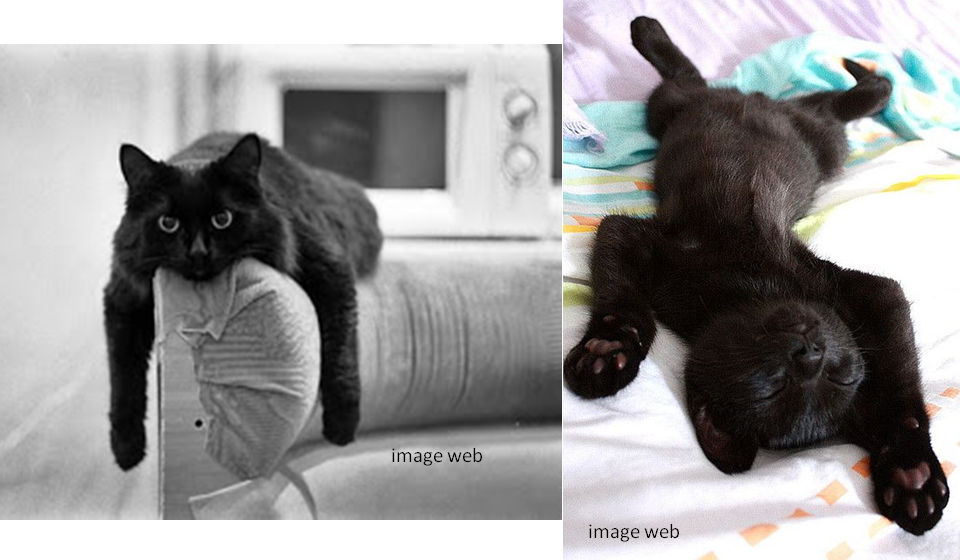 Il apparaît que le chat noir… affectionne les positions allongées « relaxes » :