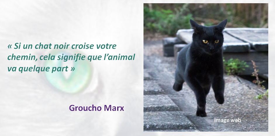 D’ailleurs, dans les pays du Maghreb, comme en Angleterre, on considère que le chat noir est un porte-bonheur…