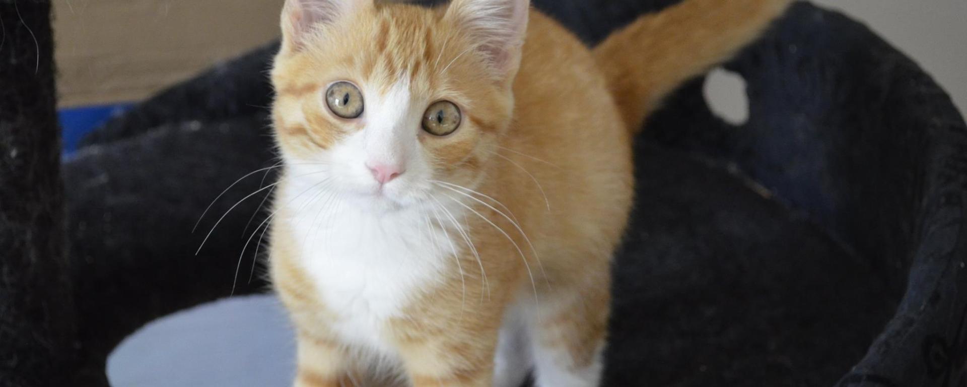 Mercure est un gentil chaton qui ronronne dès qu’on lui parle. Il adore les caresses et vient même les chercher.