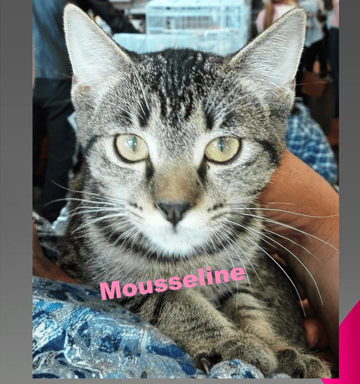 Mousseline a été adoptée elle aussi, comme ses frères et soeurs Master, Miss, Magnum et Mystère (les photos ci-dessous)