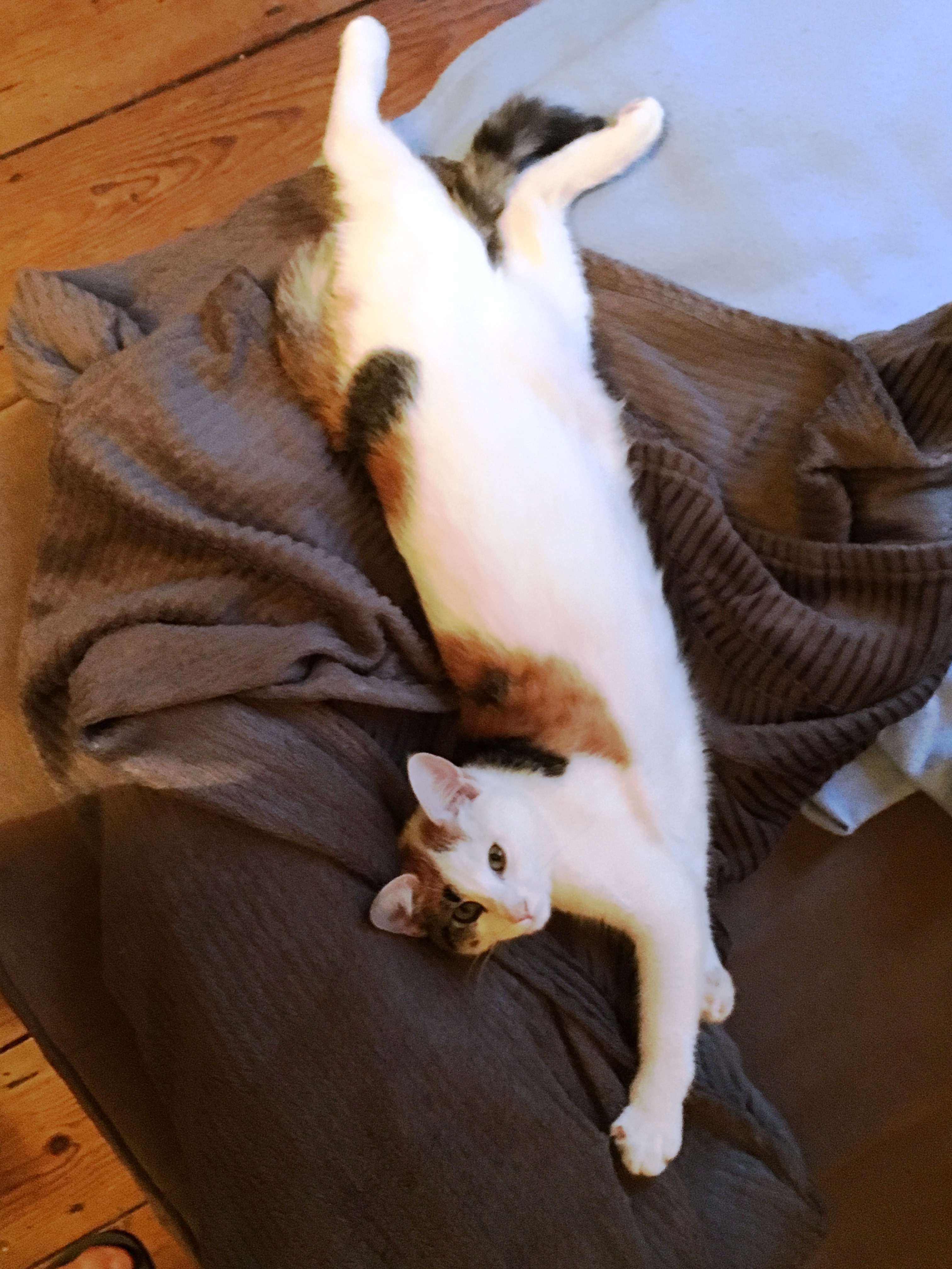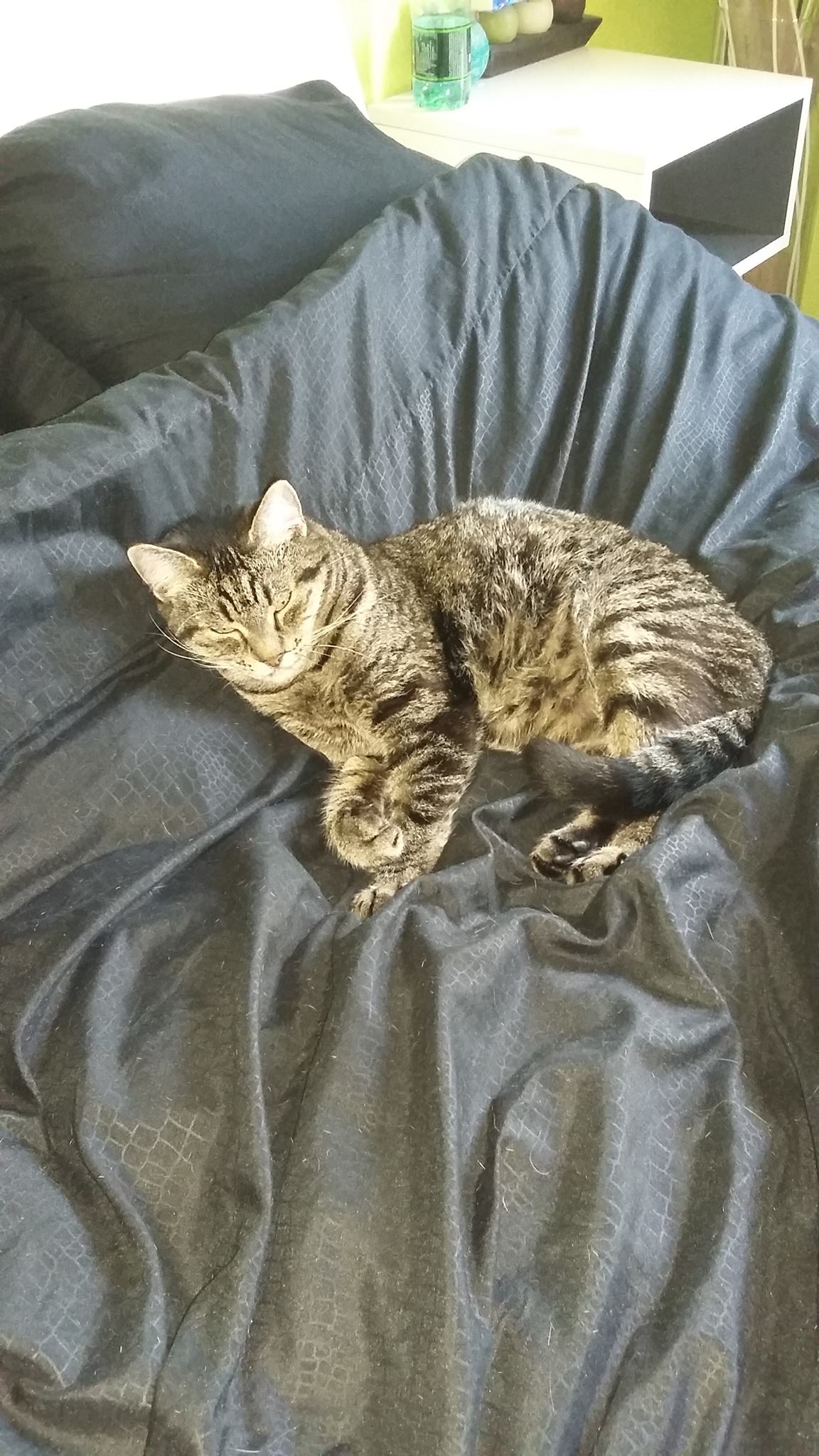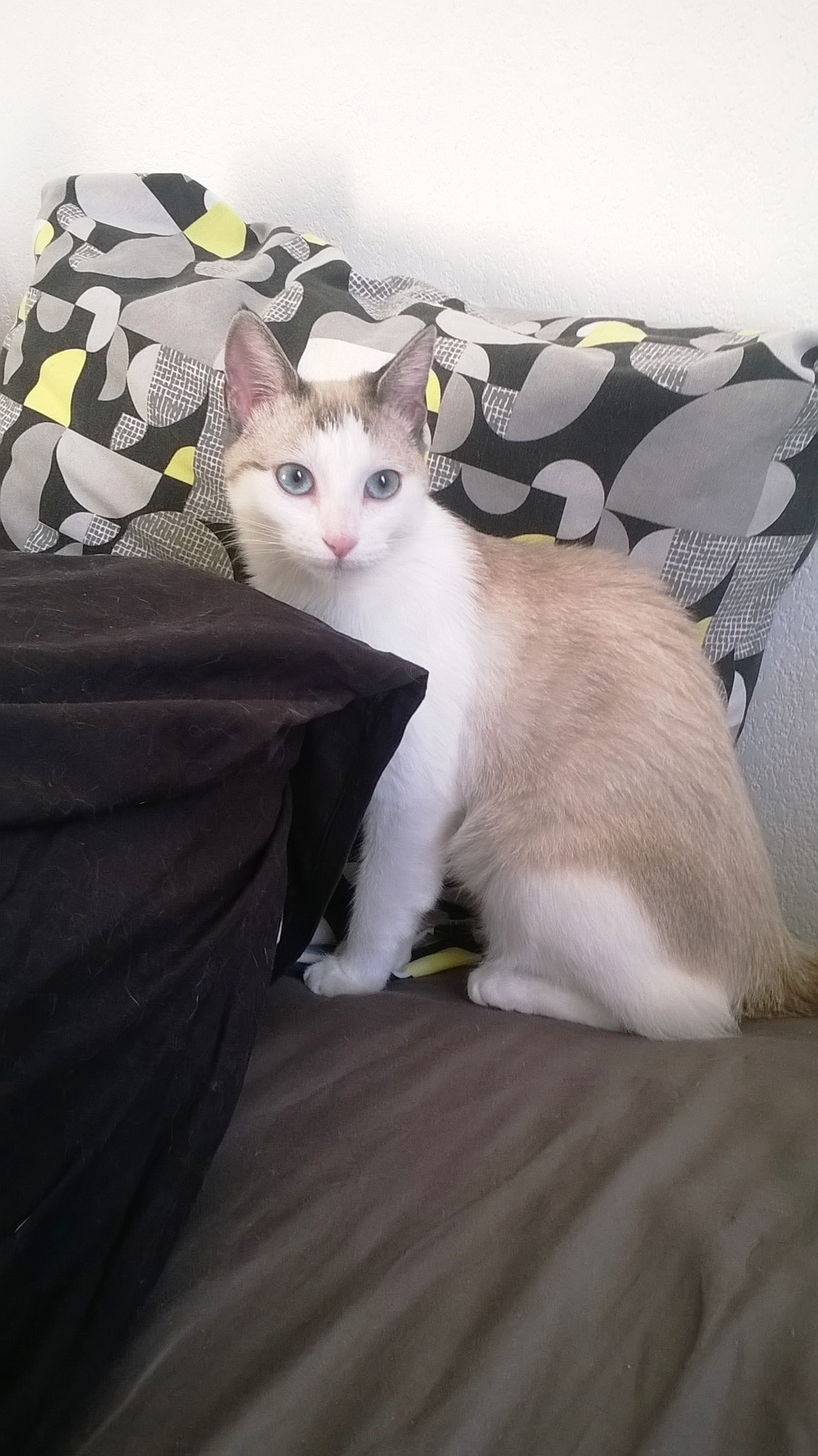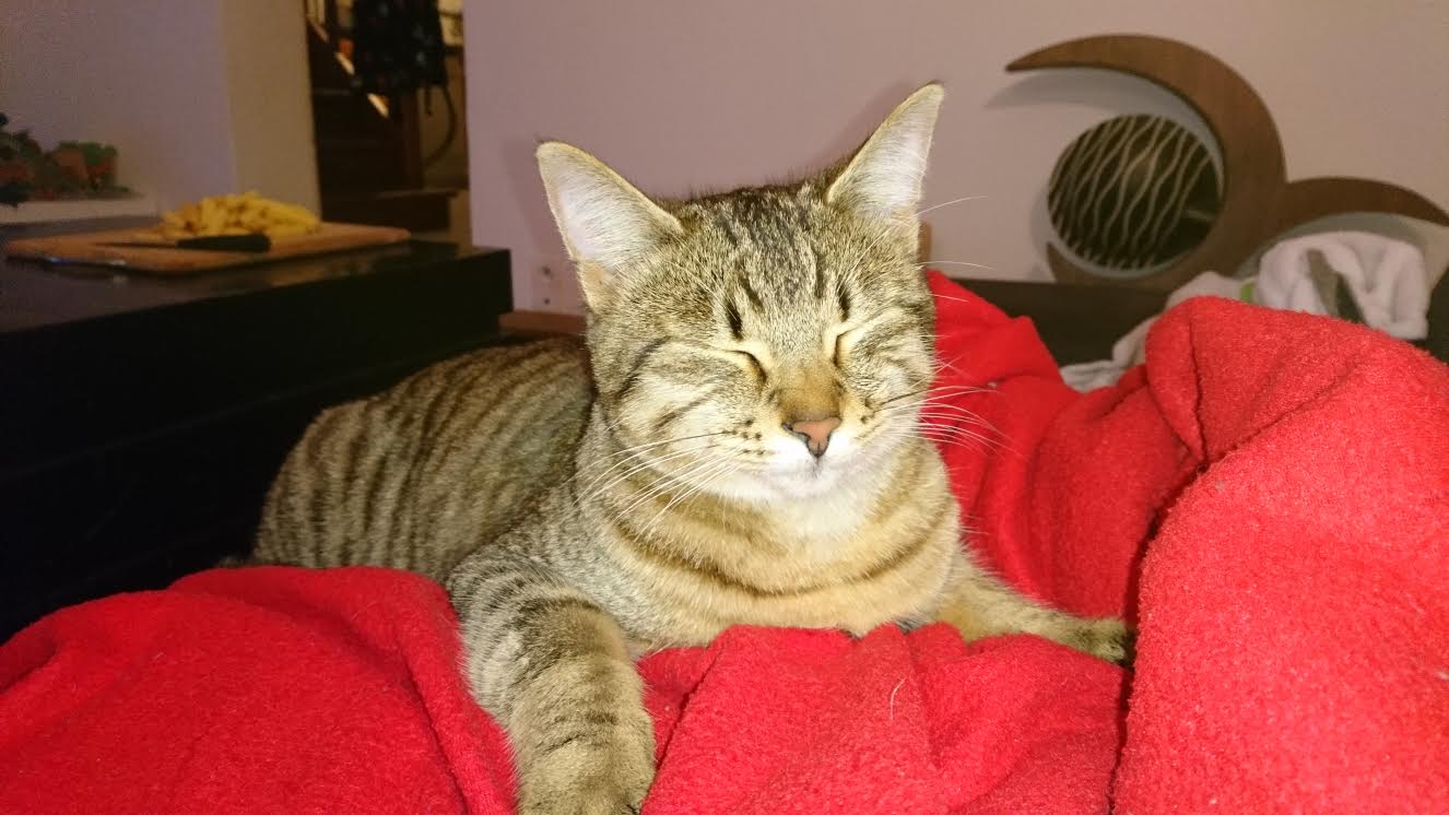 Il va très bien, il est toujours dynamique. On ne s’ennuie pas avec lui, heureusement qu’il a de nombreux moments de câlins. Son plaisir : se caler contre moi et laver son bidou 🙂