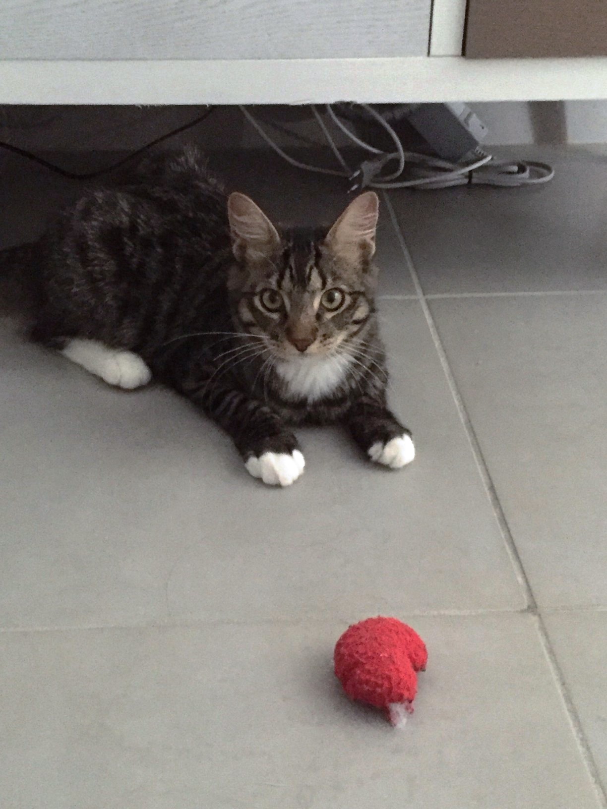 « Je ne pensais pas que ça pourrait être aussi bien ! Il n’est pas du tout peureux, il ronronne tout le temps, va dans la litière normalement, joue comme un fou et à explorer les lieux en toute tranquillité, et nous a déjà fait des super câlins ! »