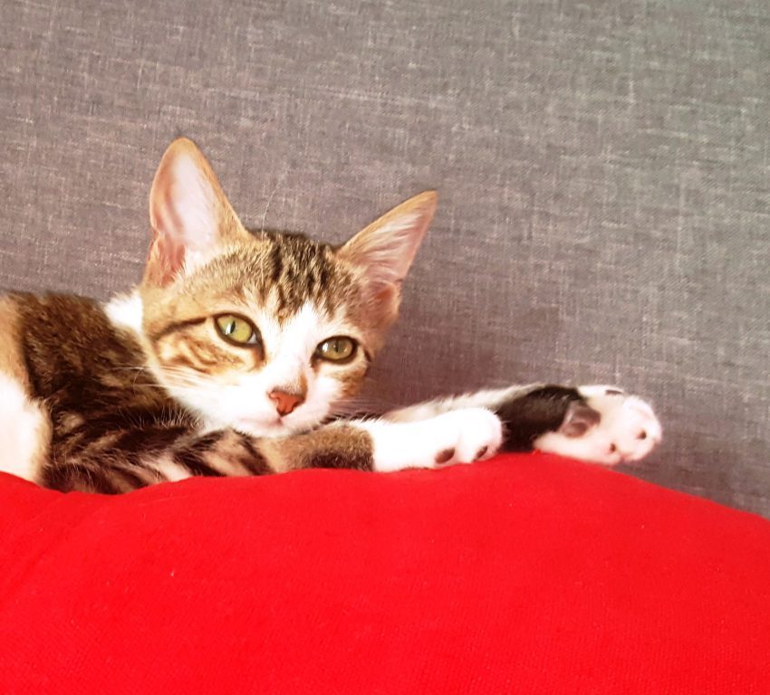 Marionnette a été retrouvée avec sa soeur Mooréa , abandonnées devant chez un vétérinaire à 2 mois environ. Elle a probablement toujours vécu à l’intérieur.