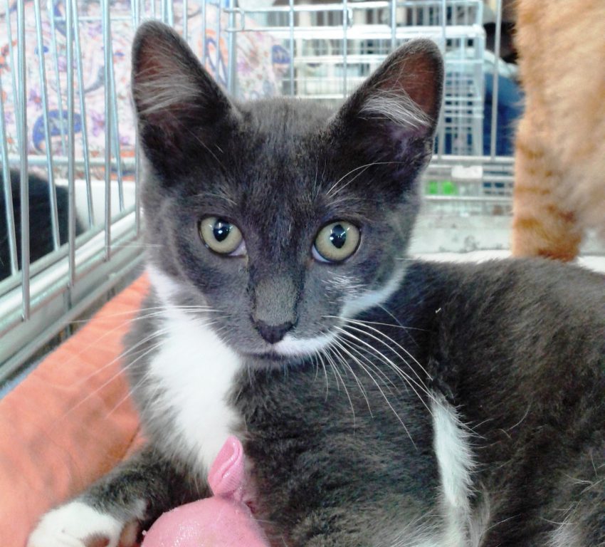 Je m’appelle Meicie et je suis grise et blanche. Je suis encore un peu craintive.