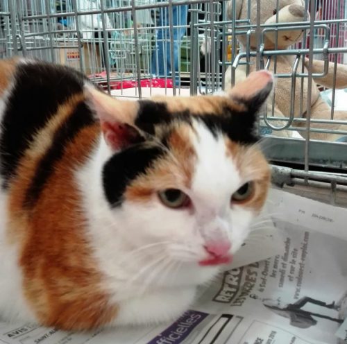C’est une jolie minette tricolore de nature douce et calme. Elle adore les bras et est sociable avec les autres chats.