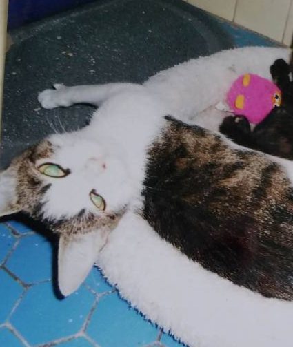 Lyna… la douceur de son regard ne laisse pas imaginer un début de vie de chat très compliqué : abandonnée avec ses bébés, retrouvée toute maigre, elle se révèle néanmoins un AMOUR de chat : gentille avec tout le monde, elle ronronne dès qu’on s’intéresse à elle. Assez indifférente à ses congénères, elle est cependant réticente à faire connaissance avec les chiens !…