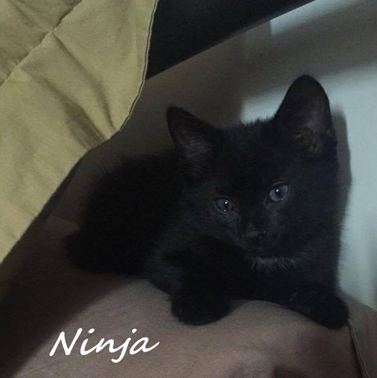 Ninja est un chaton tout en douceur, très calme et discret qui a besoin de beaucoup d’affection et d’attention. Son tempérament incite à le chouchouter. Sa belle robe noire s’habille de quelques poils blancs au plastron.