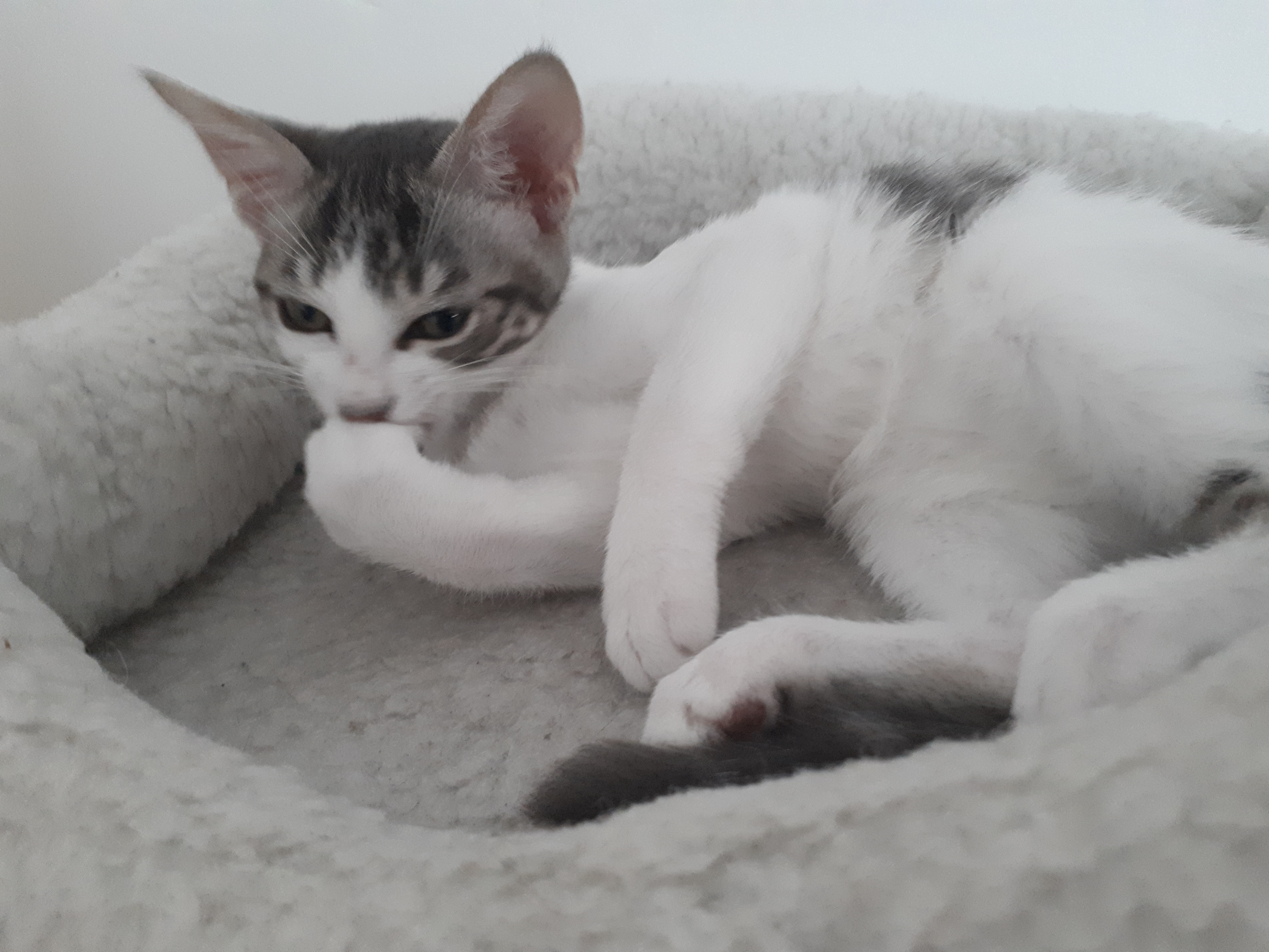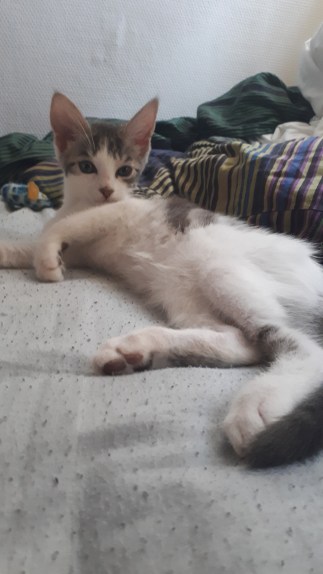 Nyo est une boule d’énergie ! il est très foufou et joueur, il saute partout, et aime beaucoup faire des grandes parties de jeux avec les autre chats.
