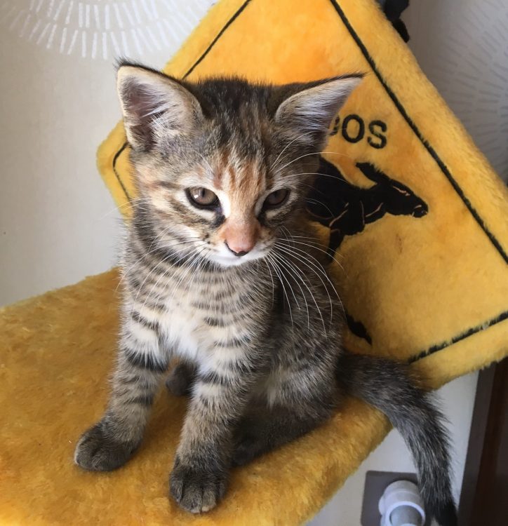 – Couleur : tigrée trois couleurs (avec un charmant minois roux)