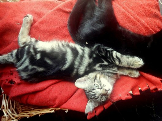 – Couleur : tigrée gris/noir poils mi longs