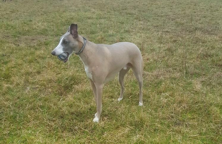 Jimmy est un whippet (lévrier) pur race mais non LOF de 3 ans. C’est un chien sensible, calme en intérieur qui aura besoin d’espace pour pouvoir courir.