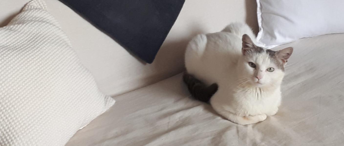 « Mao est un petit minet d’environ 18 mois plein d’amour et de malice. C’est aussi un bavard qui vous fera la conversation.