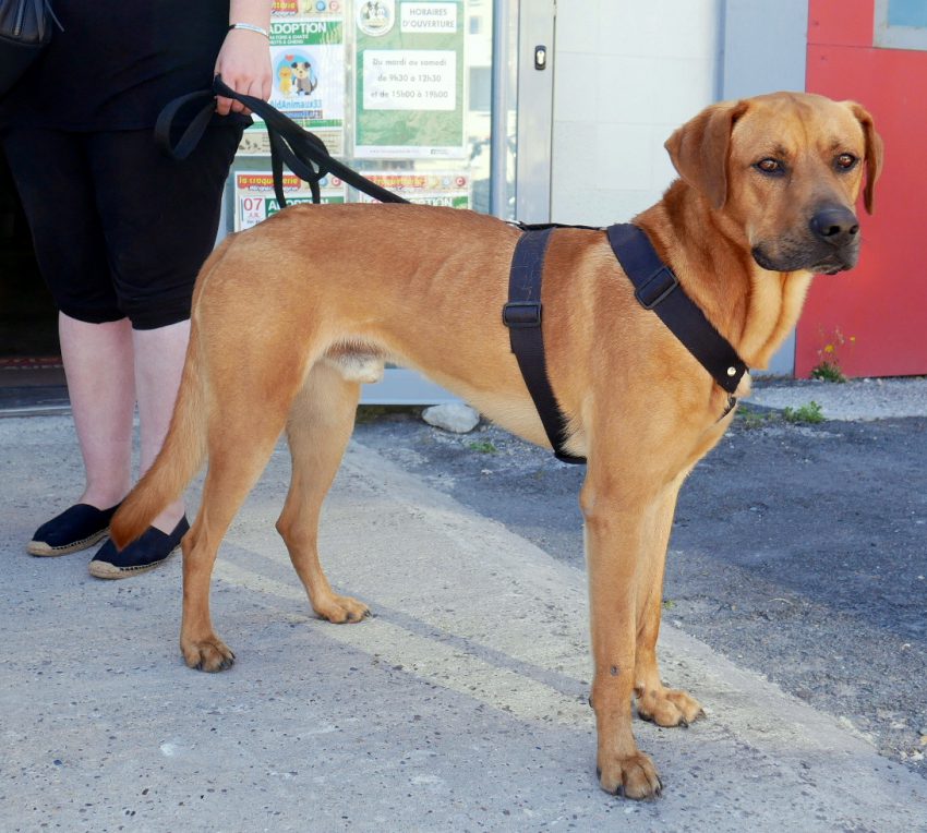 Il est ok chienne et chat mais pas ok mâle. Il pèse environ 28kg.