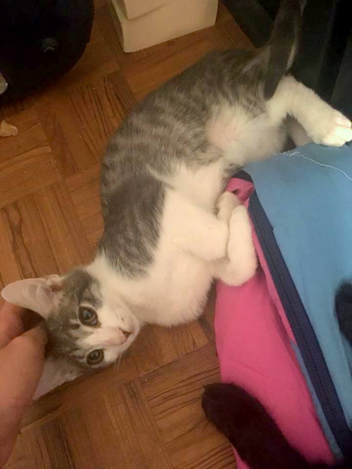 Il ADORE les câlins et ronronne même quand on caresse son frère (Osmano). C’est un AMOUR de chaton qui a besoin d’attention.