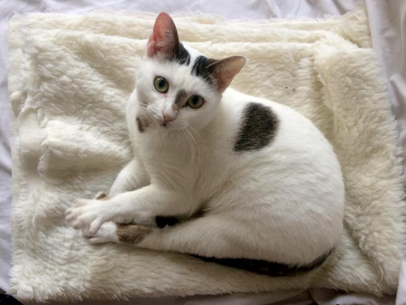 « Nikita est petite chatte ultra câline, douce et chantante : elle roucoule quand elle ronronne. Elle est très attachante. Elle n’hésite pas réclamer des caresses et ce même aux visiteurs qu’elle ne connaît pas.