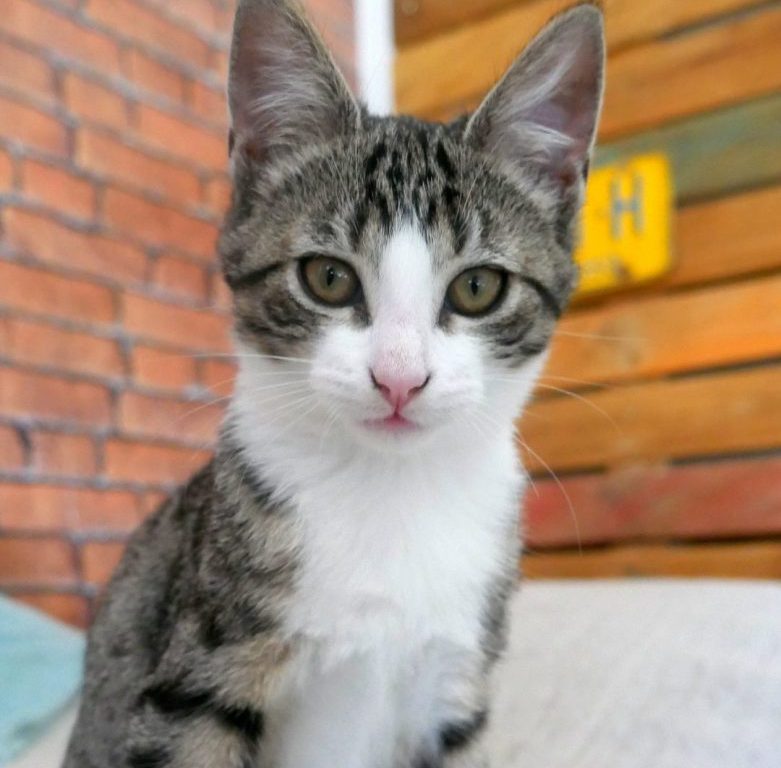 – Couleur : tigrée et blanche