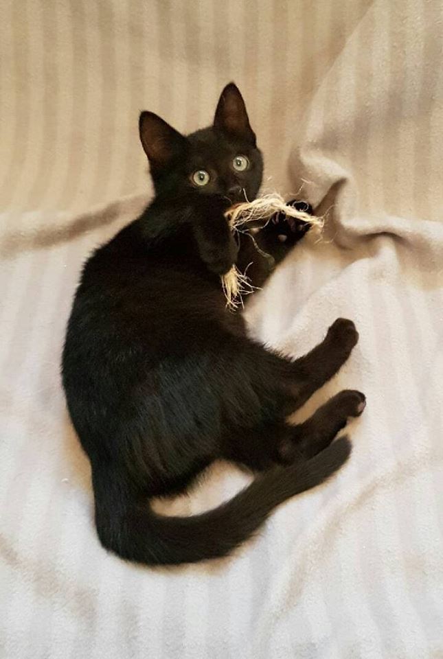 Il aime jouer avec tout ce qu’il trouve… mais s’il a un compagnon de jeu, humain ou félin, il préfère. Il est en accueil avec sa soeur Occibelle.