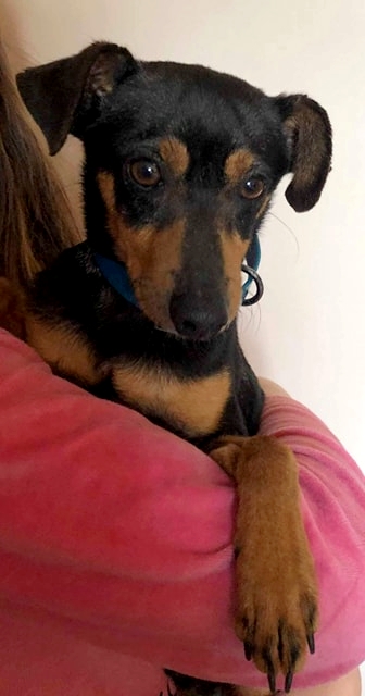 Obi est un beau pinscher de un an très câlin. Obi n’est pas un pinscher nain.