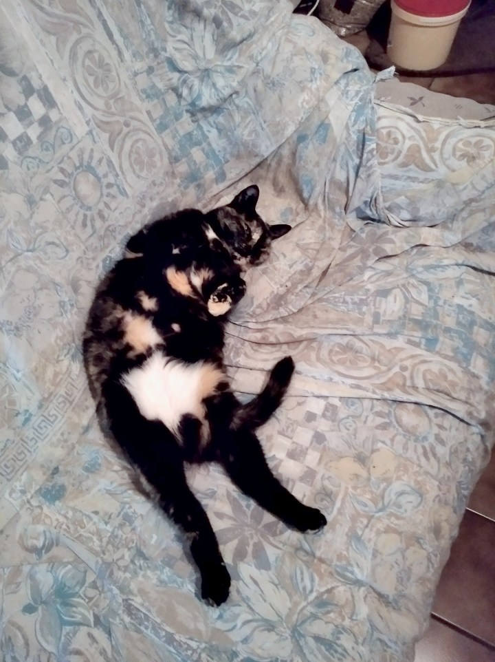 Zette est une adorable minette de trois ans que nous avons recueillie gestante en mars dernier. Elle se montrait un peu sauvage.