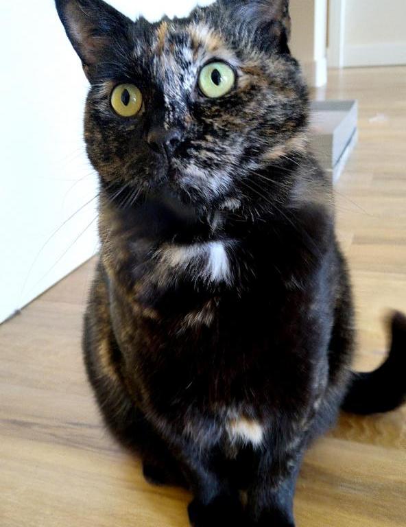 Je suis une belle écaille de tortue très joueuse et amusante. Je n’ai pas de jouet préféré, je les aime tous ! Je passe du temps à chasser les souris en mousse, attraper les ficelles, courser les balles. Parfois je ramène même ma balle en mousse pour qu’on me la renvoie.