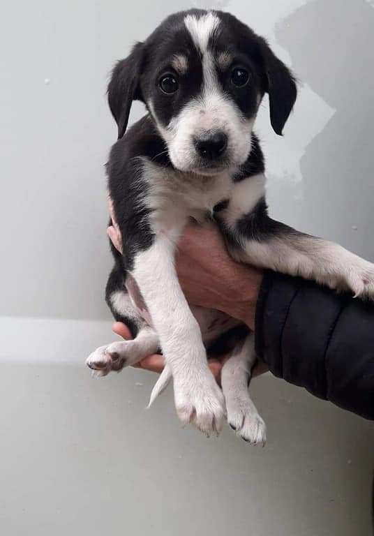 – Race : croisée berger, noire et blanche (2 tâches légèrement rousses au-dessus des yeux)