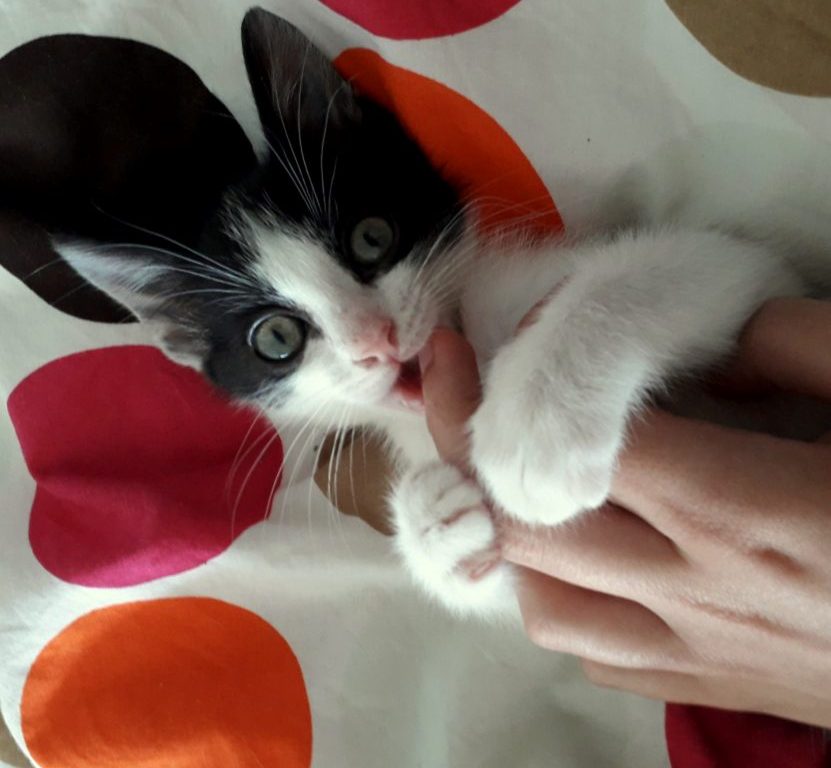 Son histoire : Rescue, né d’une maman sauvage, a été trouvé avec sa fratrie à l’âge d’1 mois. Il est tombé très malade mais a fait preuve d’une incroyable rage de vivre et n’en garde aucune séquelle, d’où son petit nom.