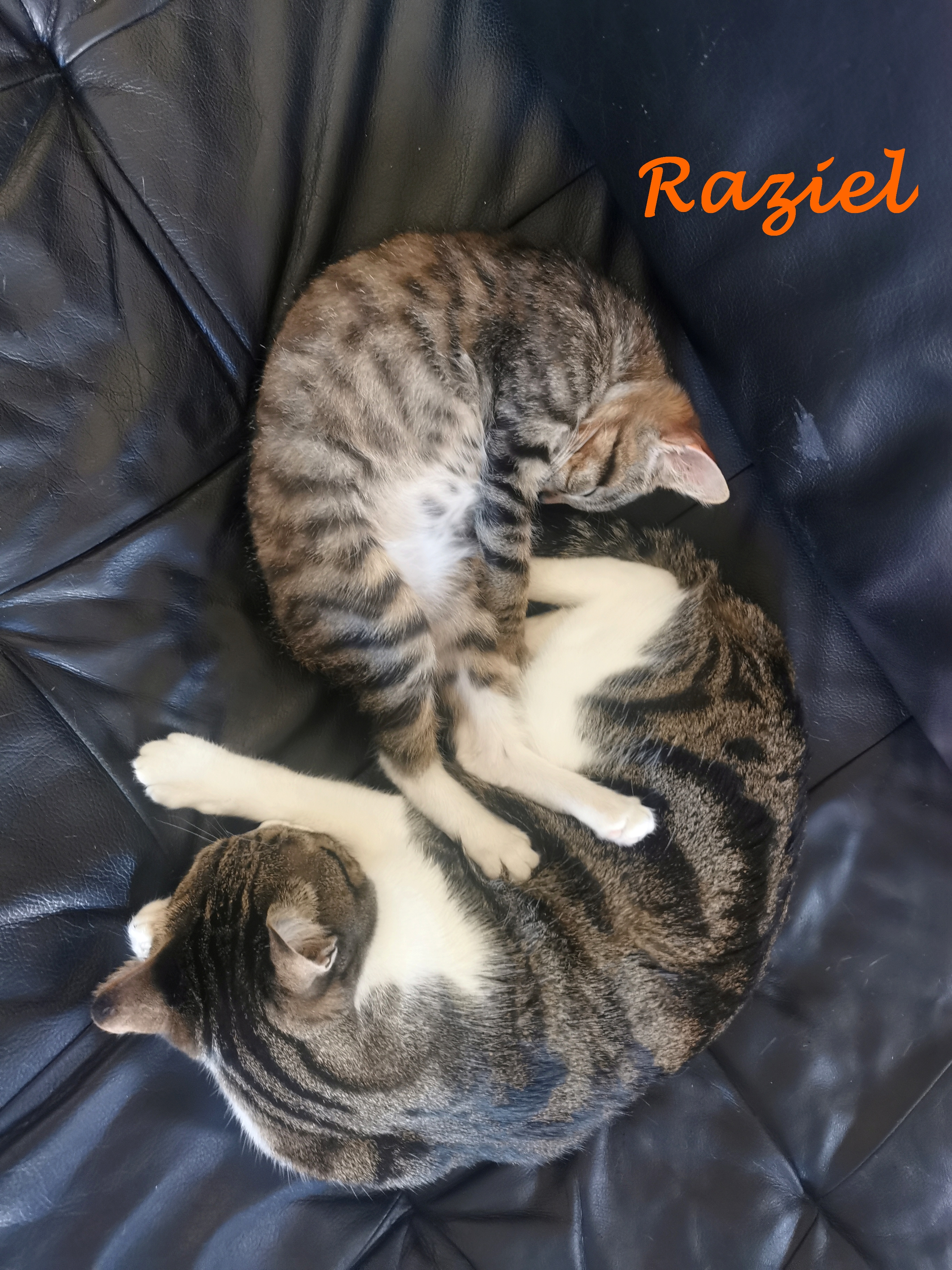 Raziel est un chaton très sociable et joueur. Il a une vraie passion pour les rouleaux d’essuie-tout qu’il aime déchiqueter et éparpiller.