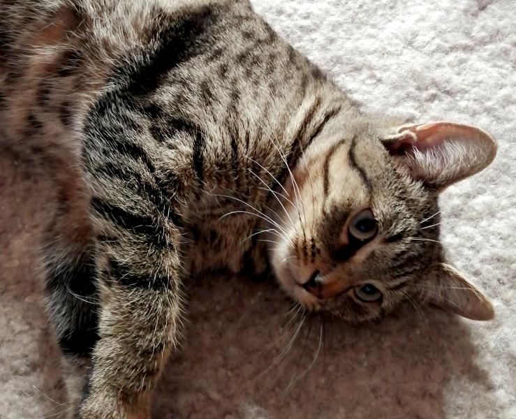 Elle est très joueuse et raffole des tunnels et des balles. Elle s’entend avec ses congénères et apprécie de dormir avec eux. Son entente avec les chien est inconnue.