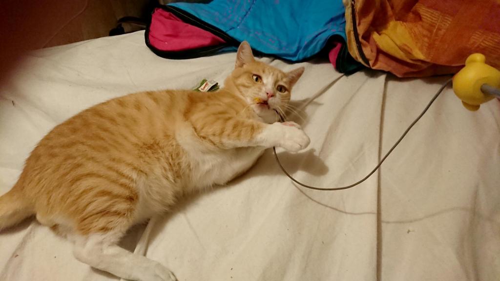 Ce grand fan de jeu se laisse souvent emporter par son enthousiasme et en oublie de retirer ses griffes ou mordille parfois mais il apprend petit à petit à se maîtriser. Les jeux sans les mains (lancer de balle, canne à pêche…) seront vos meilleurs alliés.