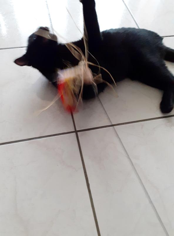 Rigolote est une jeune chatte agréable, facile à vivre et très très joueuse. Elle a une âme de chaton et s’amuse de tout, les balles, son tunnel, les plumes… d’ailleurs elle a un tout petit gabarit et ne paraît pas du tout avoir ses trois ans. Elle cherche même à jouer avec le petit York de sa famille d’accueil.