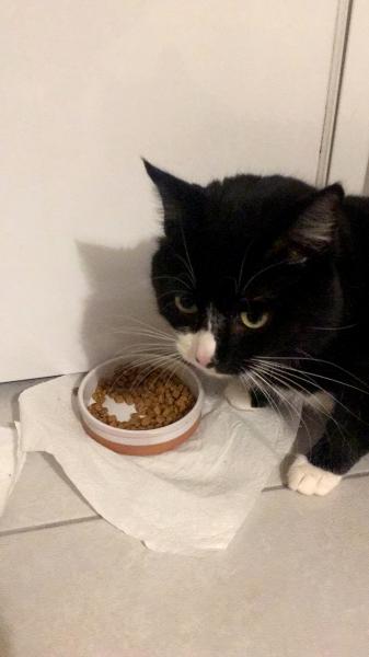Ce petit gourmand apprécie les friandises ou un peu de pâtée occasionnellement. Au quotidien, il mange ses croquettes avec plaisir, il faut dire qu’il a bon appétit.