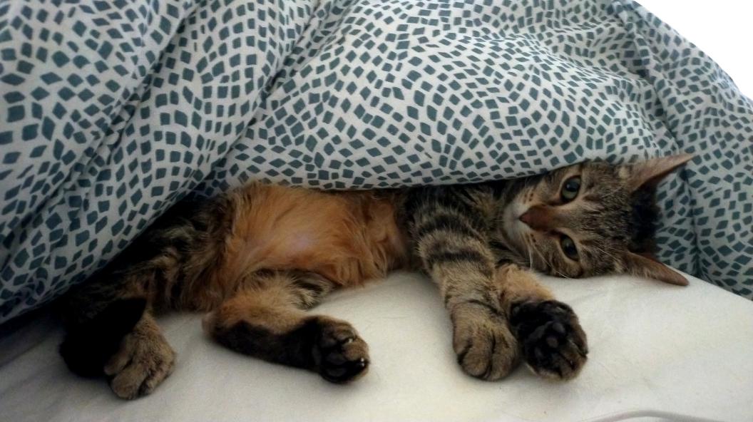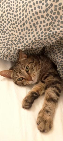 Comme tout chat, elle adore jouer, manger et (surtout) dormir. Son endroit préféré pour faire la sieste : sous la couette bien au chaud.