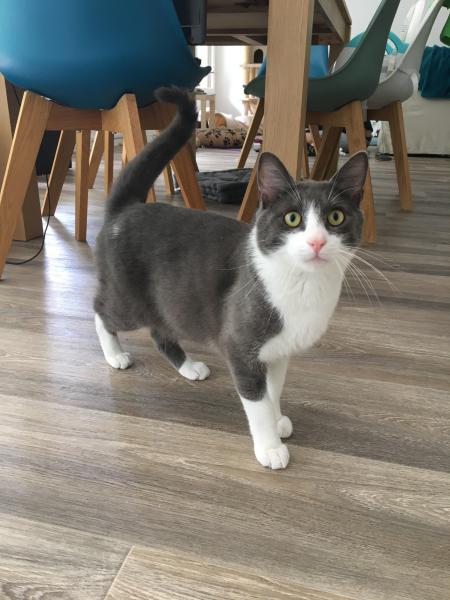 Papuche est un jeune chat très joueur, mais aussi très timide avec les humains. Cependant, avec de la patience et quelques friandises, il se laissera amadouer car c’est un grand gourmand.