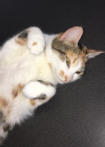 Pirouette est une jeune chatte très intelligente qui a besoin d’être stimulée et d’interaction avec l’humain pour être épanouie.