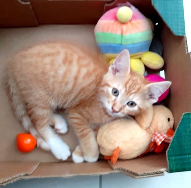 Sully est un adorable chaton très fûté qui adore jouer et faire le chef de famille avec ses soeurs. C’est aussi un amour câlin.