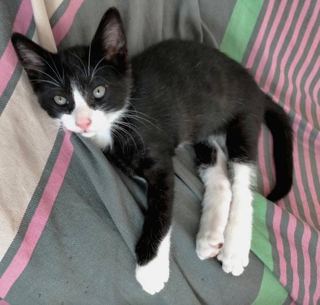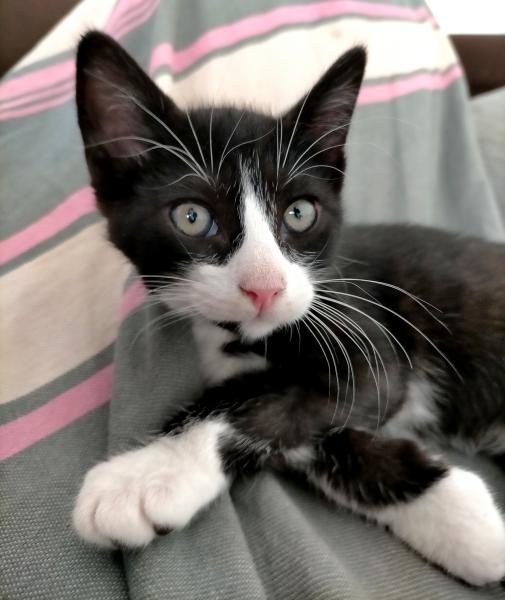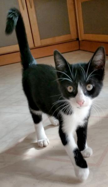 Sakura est un chat mâle noir et blanc au long cils. Vif et très sociable, il aime la compagnie des humains et jouer avec eux. Gourmand, ce bon vivant fera le bonheur d’une famille avec son ronron des plus expressifs.