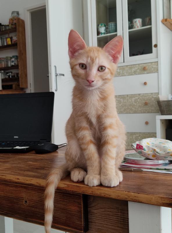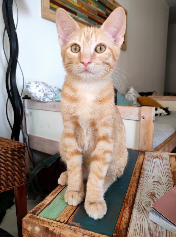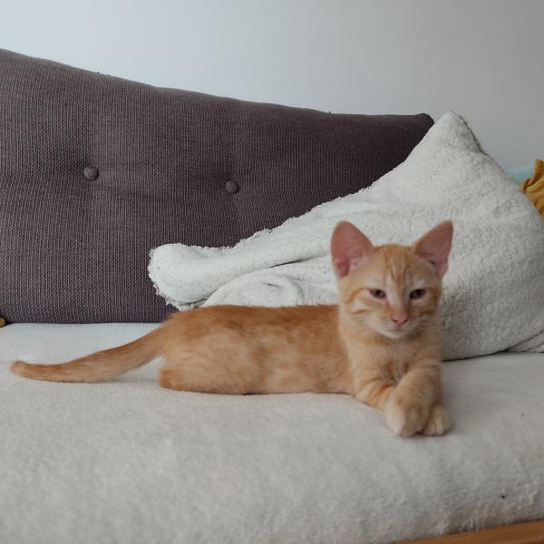 Son histoire: Sherkhan et son frère Shazam sont arrivés chez leur nounou Sandrine maigrichons et apeurés, après avoir été sortis d’un site de chats errants.