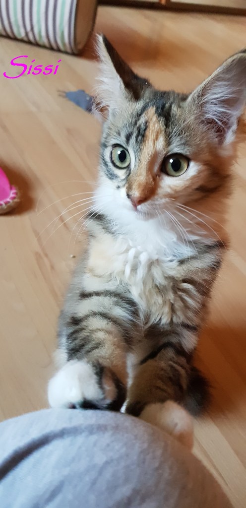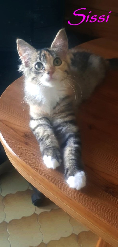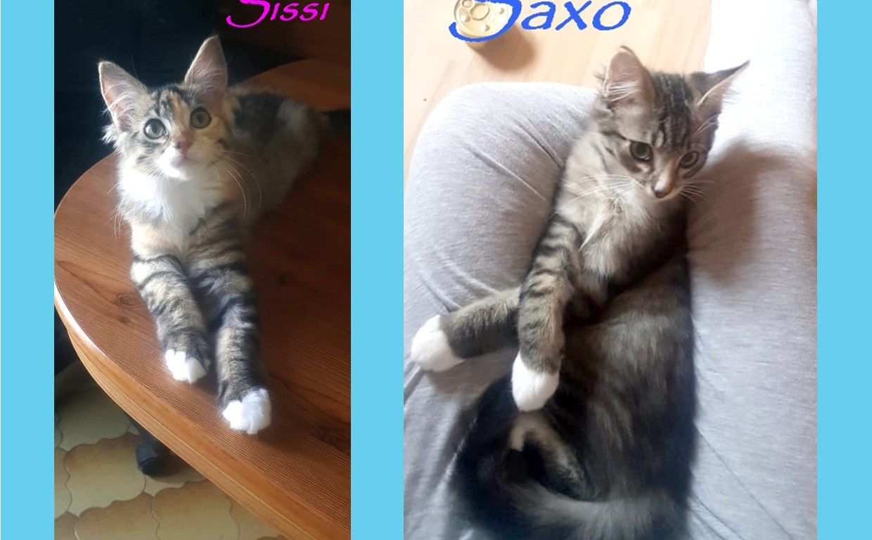 Sissi et son frère Saxo sont deux chatons fusionnels qui font tout ensemble: manger, dormir, jouer, réclamer des câlins, faire des bêtises de chatons et ronronner. Ils n’aiment pas être loin de l’autre et si c’est le cas s’appellent en miaulant. Ils sont joueurs et plein de vie et aiment grimper partout pour découvrir leur environnement.