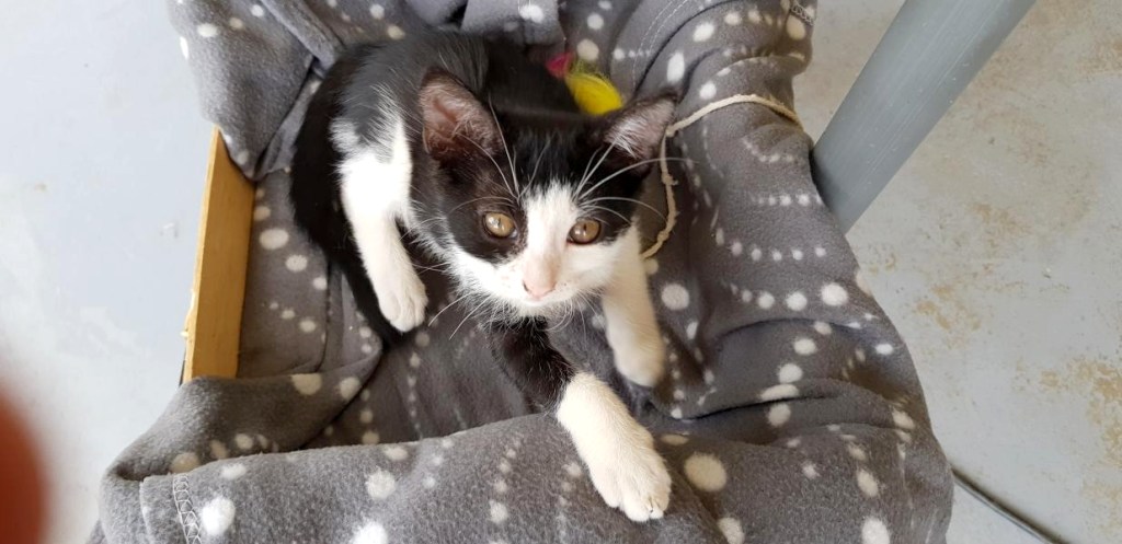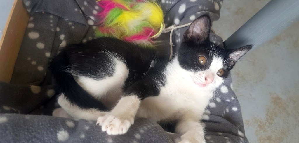 Son histoire: Suzon et sa fratrie ont été déposés à peine âgés de 15 jours et avec un gros coryza chez l’un de nos vétérinaires partenaires. Leur nounou Sylvie les a biberonnés jusqu’à leur sevrage.