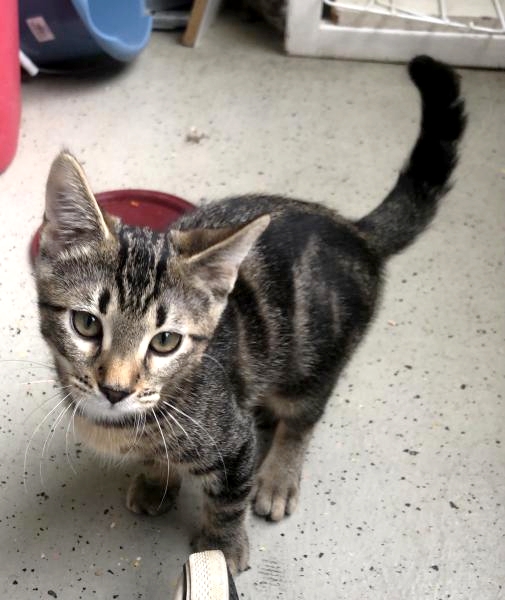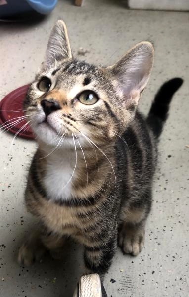 Son histoire: Scoot et sa fratrie sont nés d’une mère errante (stérilisée et mise en sécurité depuis) près d’un site sur lequel ils étaient menacés de mort, certaines personnes sur place aillant déjà tué plusieurs chats au fusil.