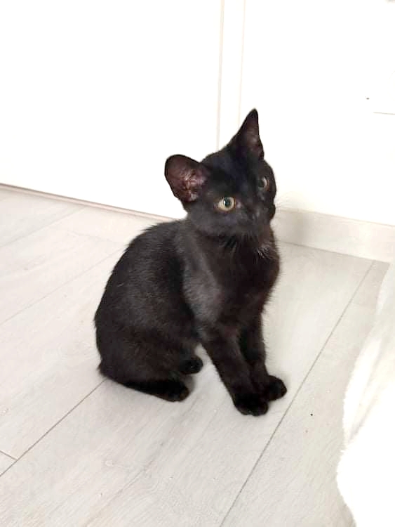 Son histoire: Sam et sa soeur Scalie sont nés d’une maman errante. Ils ont été sauvés par une dame dont le voisin menaçait de les empoisonner car ils le gênaient… Leur maman est malheureusement décédée d’un problème cardiaque juste après sa stérilisation.