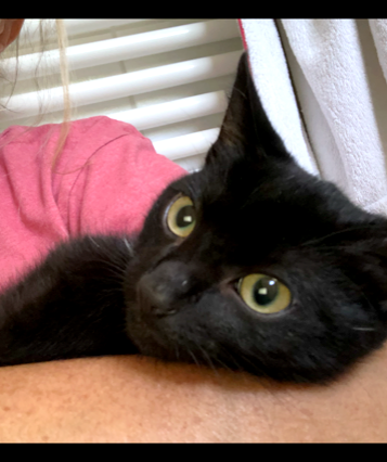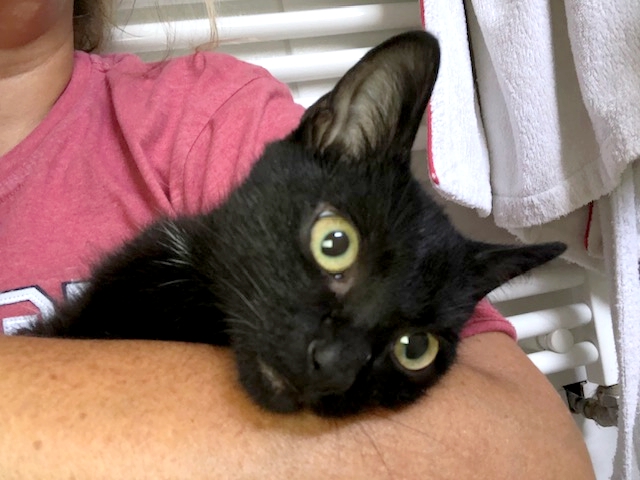 Sam est un amour de chaton encore timide mais affectueux. Il vient toujours prudemment à la rencontre de sa nounou Virginie, la renifle, la frôle puis se couche sur elle. Une fois rassuré, il se laisse câliner et adore qu’on lui caresse le ventre. Encore méfiant, il peut être effarouché par un geste brusque ou un bruit inhabituel, nous éviterons donc un placement avec de jeunes enfants qui pourraient l’effrayer.