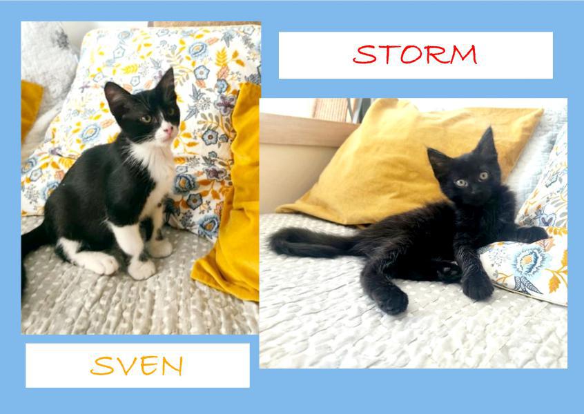 Leur histoire: Sven, Storm et leur fratrie étaient voués à être noyés après avoir été retirés non sevrés à leur maman par un voisin que leur présence dérangeait. Fort heureusement, l’une de nos familles d’accueil a pu les sauver et les biberonner.