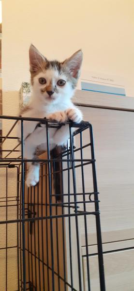 Son histoire: Spyro et ses frères et soeur étaient voués à être noyés après avoir été retirés non sevrés à leur maman par un voisin que leur présence dérangeait. Fort heureusement, l’une de nos familles d’accueil a pu les sauver et les biberonner.
