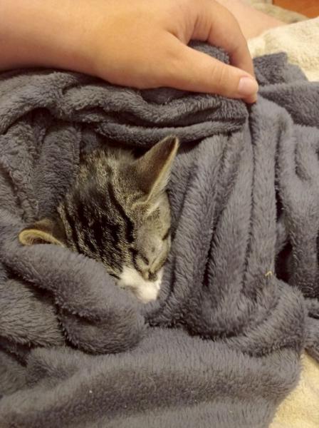 Très curieuse, elle se baladera dans tous les recoins à la recherche de l’endroit idéal pour une sieste. Son choix se portera souvent sur un plaid, surtout s’il est près d’un humain. En effet, la demoiselle a une passion pour les plaids qu’elle adore « tétouiller » et dans laquelle elle aime se lover.